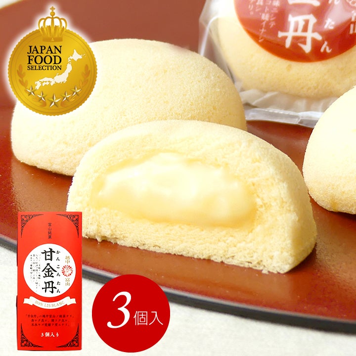 他の画像を見る 越中富山の銘菓として愛され続ける「甘金丹」(かんこんたん) 富山銘菓 甘金丹(かんこんたん) 3個入(小箱なし)(※熨斗掛け不可) 当店特別価格 ¥ 788 税込 ふわふわのスポンジに濃厚なクリーム、幅広い年代から支持される当店の定番商品です カートに入れる お気に入りに登録する